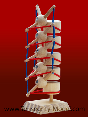 ![]() An diesem Modell können Sie nicht nur ihren Patienten das Prinzip der Tensegrity darstellen sondern auch sehr schön erforschen, wie einzelne Wirbel sich bei Bewegung in dem tensegralen Konstrukt unserer Wirbelsäule verhalten. Das Modell ist 30 cm hoch und eine außergewöhnliche Skulptur auf ihrem Schreibtisch. Ein wunderschöner Hingucker aus einheimischen Hölzern. Jedes Modell wird einzeln fair und von Hand in Deutschland gefertigt. Ich hoffe Sie haben genau so viel Freude an dem Modell wie ich. Ich habe es für mich entwickelt, um die Zusammenhänge und Bewegungsmöglichkeiten der Wirbelsäule und ihrer Teile besser zu verstehen. Um die Probleme in der Struktur einer Wirbelsäule zu erkennen, zu verstehen und aus dem Blickwinkel der Tensegrität mit ihnen zu arbeiten. Hier sehen Sie die Möglichkeiten und die Funktionalität des Tensegrity-Modells der Wirbelsäule und wie Sie es selber für Erklärungen verwenden können: >> Video << |